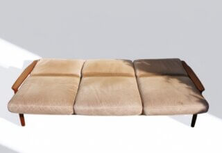 Canapé Convertible / Daybed Danois en Teck & Cuir Vintage 1960